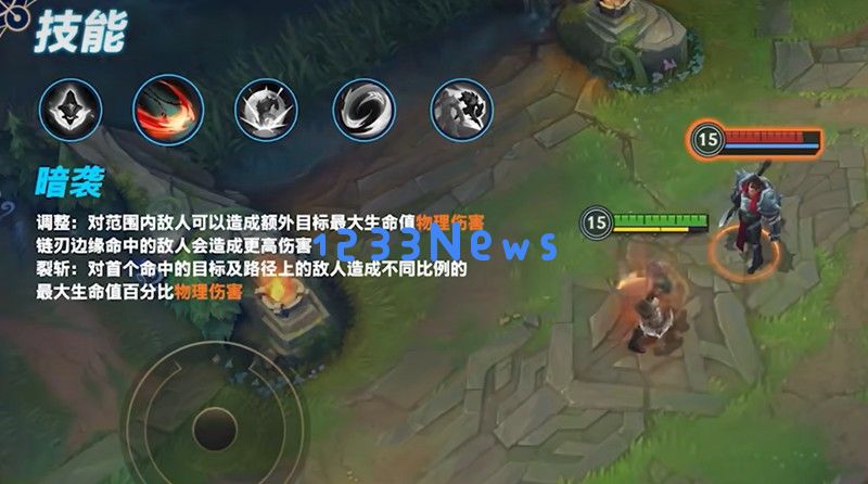 重做后的暗袭技能现在可以对范围内敌人造成基于最大生命值的物理伤害,特别是当技能命中链刃边缘时伤害会更高。升级为"裂斩"后,技能会对前方和两侧敌人造成不同比例的伤害,但刷野时会有伤害上限限制。英雄联盟手游的这个改动提升了安蓓萨的操作上限和团战爆发能力。