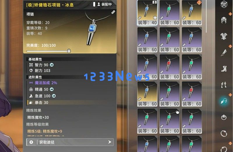 装备选择时应优先确保急速词条,在此基础上尽可能堆叠精通和暴击属性。
