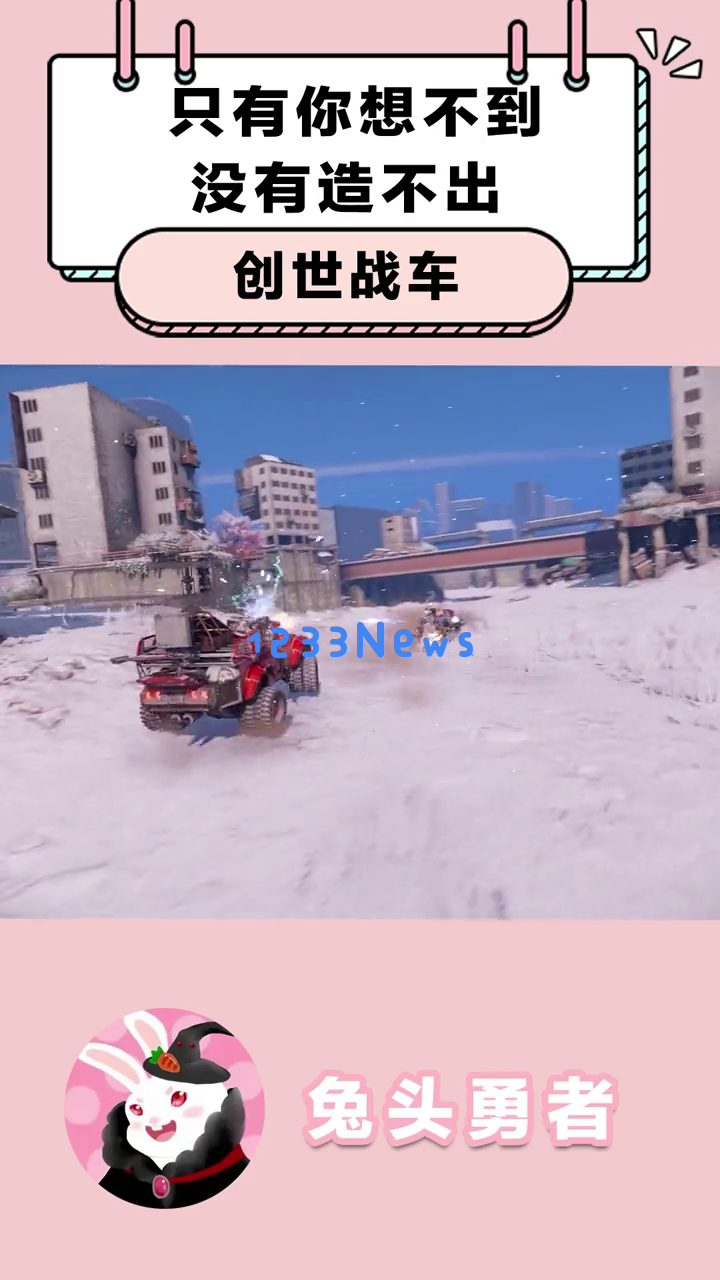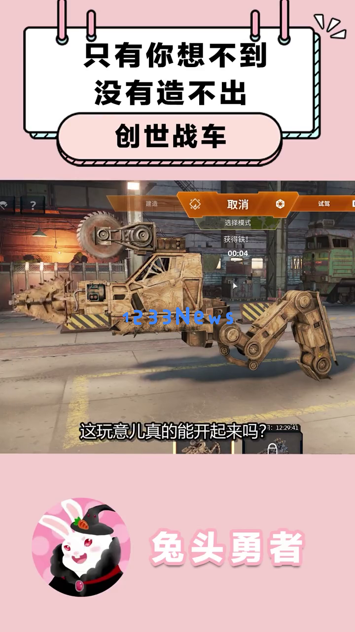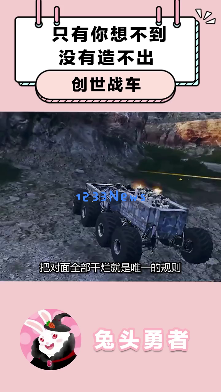 首先映入眼帘的是一辆由各种机械部件拼凑而成的战车,背景是一个工业风格的场景。这辆车看起来非常硬核,让人忍不住想问:“这玩意儿真的能开起来吗?”