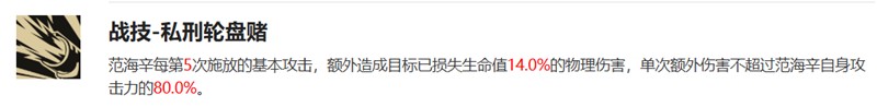 范海辛的普通攻击铳射能对单个目标造成物理伤害。每第五次普通攻击会根据目标已损失生命值造成额外伤害,这个特性让他在对抗高血量敌人时尤为强势,能够快速收割残血目标。
